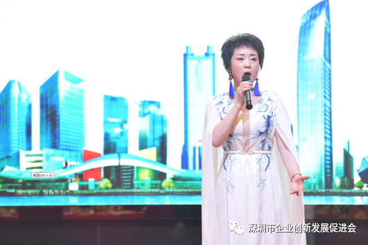 我會新任理(lǐ)事陳藝女士,以嘹亮(liàng)的(de)歌喉演唱(chàng)了《我愛你,中國(guó)》、《英雄贊歌》展示了深圳女企業家的(de)風采。