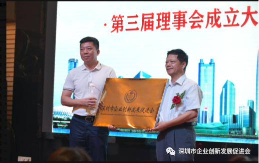 深圳市(shì)科(kē)學(xué)技術協會黨 組成員、巡視(shì)員孫楠為(wèi)新任會長(cháng)黃立先生授牌。