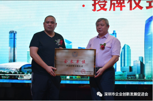 深圳市(shì)科(kē)技類社會組織聯合黨 委第一(yī)書 記鍾瑞興同志緻辭祝賀,鼓勵促進會再接再厲“以會建促黨建”、發揮“先進黨支部”的(de)光榮傳統更上一(yī)層樓。并為(wèi)我會榮譽會長(cháng)單位“中城創展城市(shì)開發集團”董事長(cháng)吳發福先生授牌;