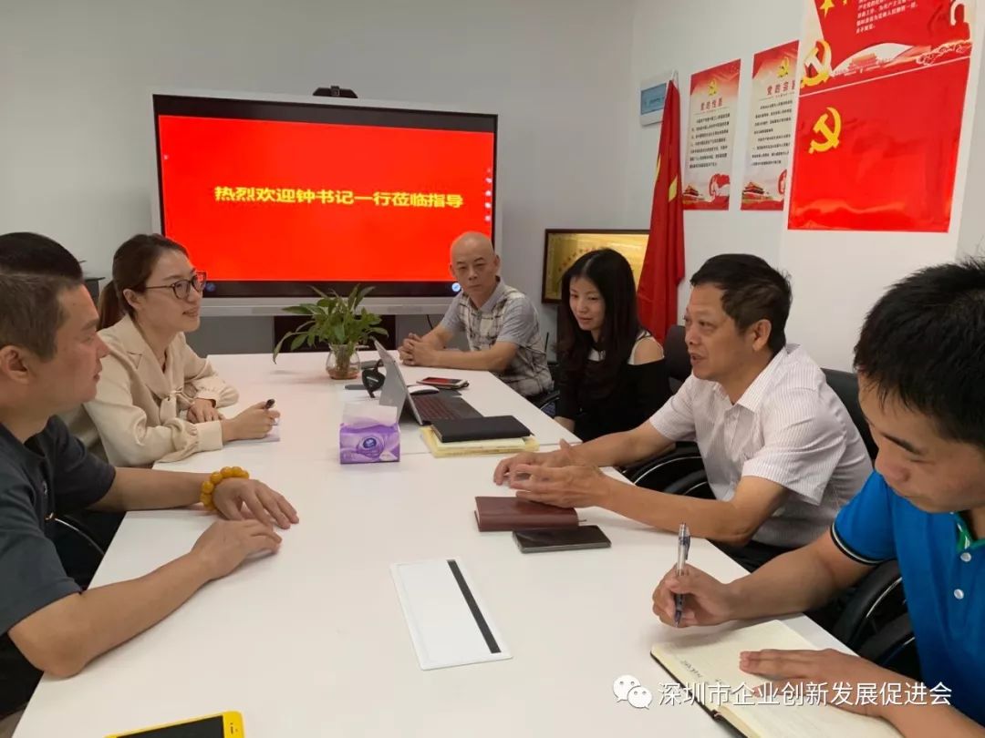 2019年(nián)11月7日下午,中共深圳市(shì)科(kē)技類社會組織黨委第一(yī)書記鍾瑞興同志一(yī)行(xíng),來到中共深圳市(shì)企業創新發展促進會黨支部進行(xíng)考察調研活動,黨委組織員盛玉紅(hóng)同志随行(xíng)。我會黨支部書記王珍同志、秘書長(cháng)張嘯林同志、副會長(cháng)周文臣同志以及黨務工作負責人高(gāo)珊珊同志一(yī)同參加了會議。