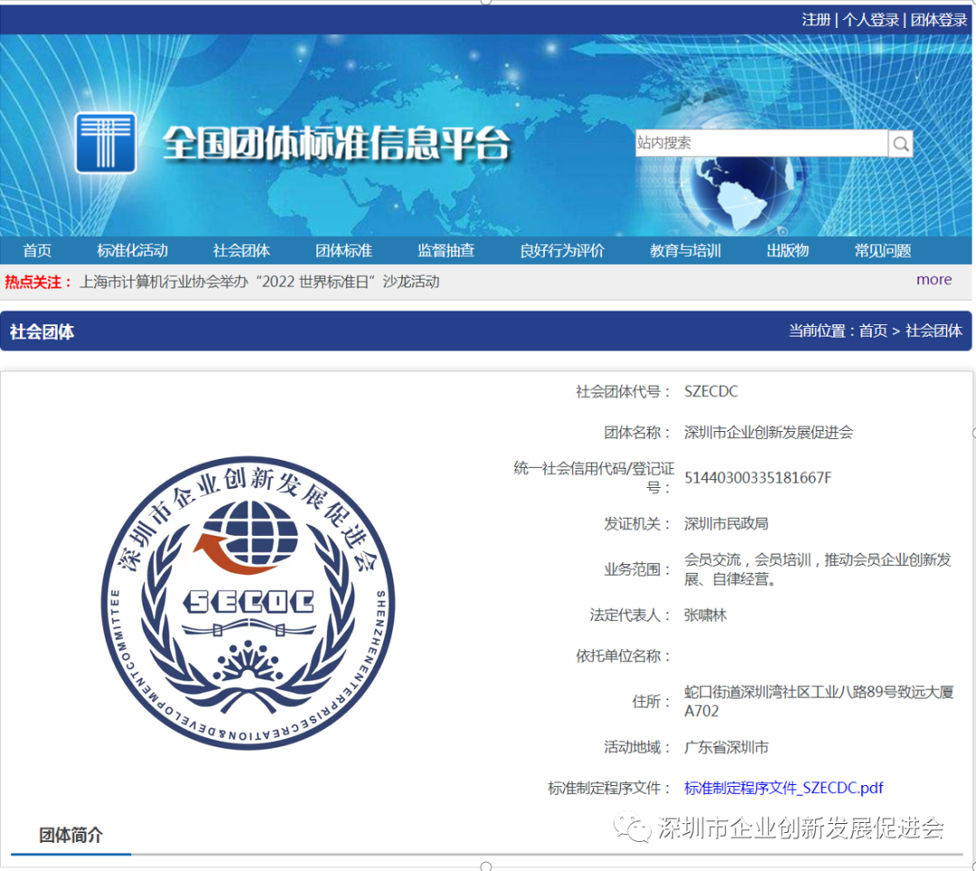 為(wèi)促進電子(zǐ)信息與智能終端等科(kē)技産業和(hé)智能制造實體企業不斷創新和(hé)規範化發展,根據國(guó)家發布的(de)《國(guó)家标準化發展綱要》、《全國(guó)團體标準信息平台用戶管理(lǐ)規定(試行(xíng))》等行(xíng)業規範化要求,推動團體标準、行(xíng)業标準工作規範有(yǒu)序發展,我會日前經注冊、審核成為(wèi)“全國(guó)團體标準信息平台”團體用戶(編号為(wèi)“SZECDC”),具備制修訂相關團體标準并發布的(de)資格。